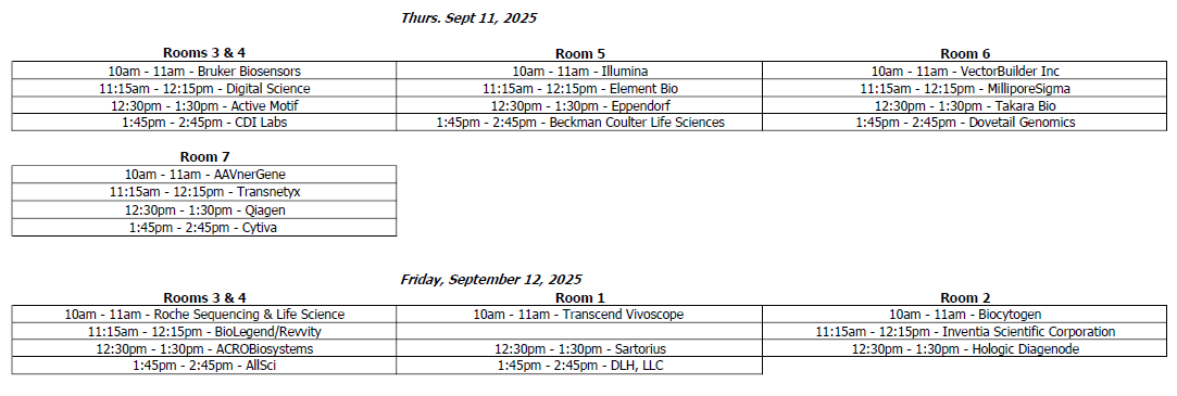 We have invited vendors to offer a workshop/seminar that dives into the research done with their technology, or ways to improve workflows. These are all educational events. Here is a schedule for the vendor workshop series. Some have included a pre-registration link. Please sign up first come first serve.